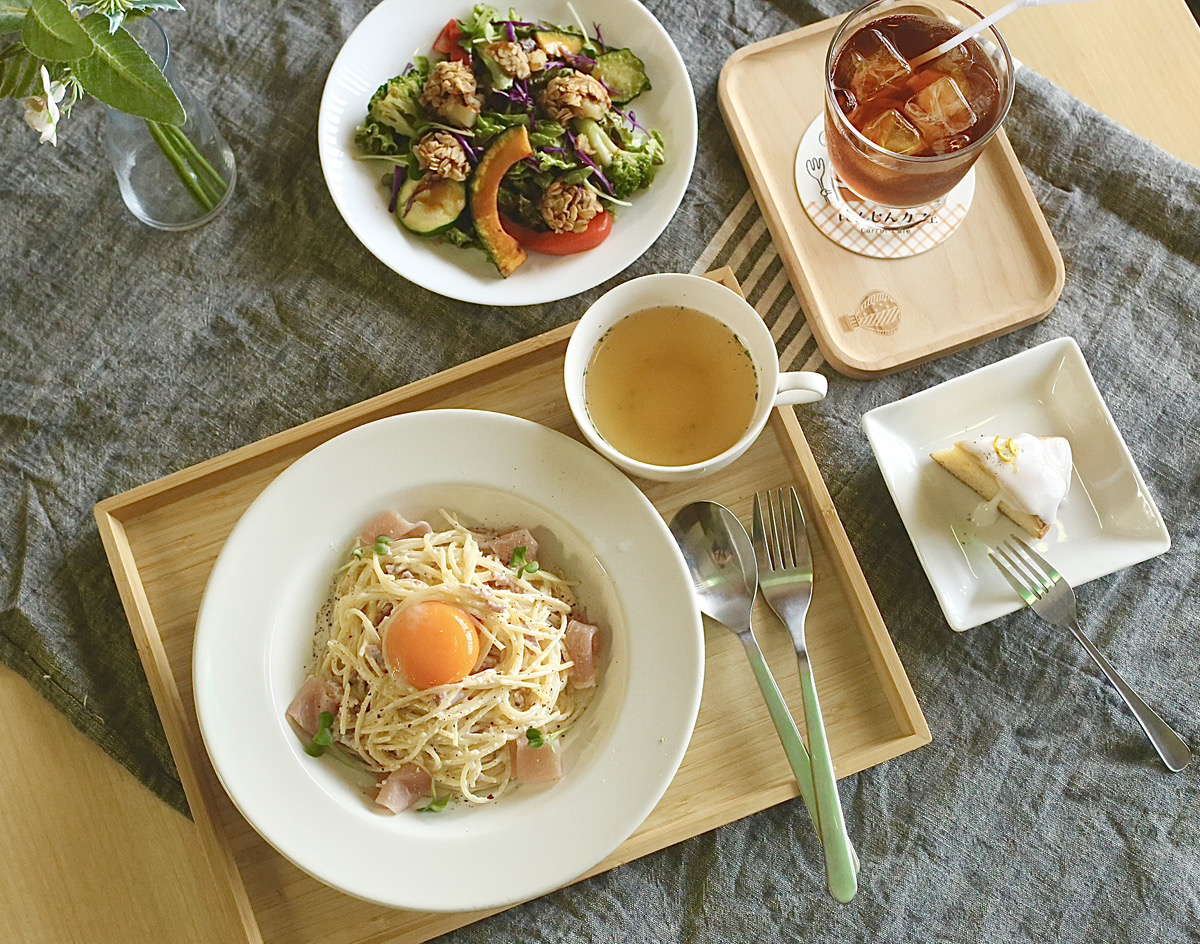 One of the café's standout offerings is its 冷製カルボナーラ (cold creamy carbonara), a unique introduction to the menu that captivates diners with its rich flavors yet refreshing texture. This dish features perfectly cooked pasta enveloped in a creamy cheese sauce, complemented by a delightful mix of egg yolk that adds a luxurious touch. Available in two lunch set variations, starting at just ¥1,300, you can enjoy a delectable meal complete with sides like salad, rice, and a mini dessert.